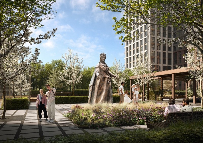На территории проектов застройщика тоже прослеживается связь с прошлым. Во внутреннем пространстве ЖК «Петровский парк» установлена скульптурная композиция «Петр Великий» авторства Зураба Церетели, уже ставшая достопримечательностью района. Работа в партнерстве с гениальным мастером продолжается — во дворе строящегося «Петровского парка II» появится бронзовая скульптура Екатерины Великой.