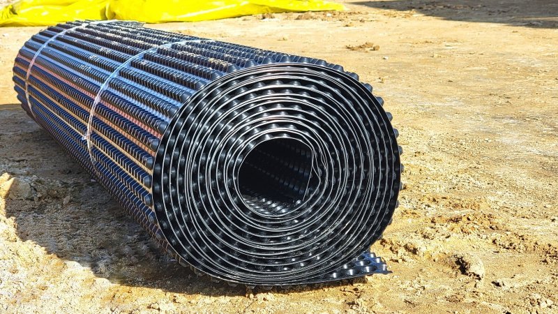 Для этой цели была использована профилированная мембрана PLANTER Standard компании ТЕХНОНИКОЛЬ. Ее назначение – равномерное распределение давления грунта по всей площади основания или фундамента и исключение точечных нагрузок.